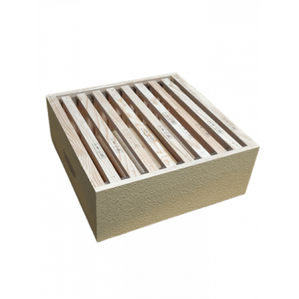Meia Alça do modelo Langstroth em Plástico com isolamento interior para facilitar o controlo da temperatura pelas abelhasTem 2 pegas para facilitar o transporte e é feito de plásti..