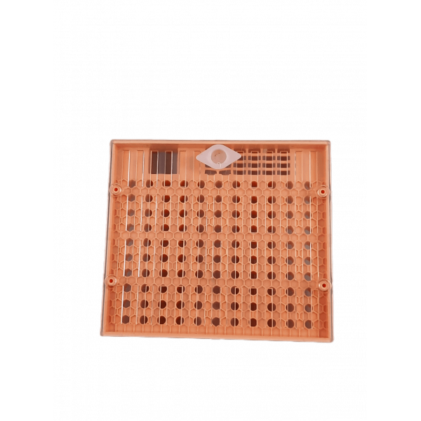 O bloco fixa-se no suporte para colocar na colmeia, e serve de suporte para a cúpula Apos o nascimento da rainha pode também servir como recipiente para candy para introduzir ..